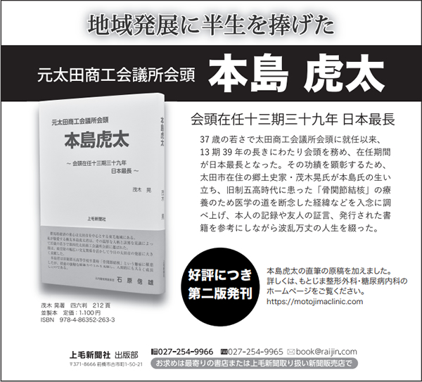書籍完成に当たって、執筆していただいた茂木晃先生、書籍の帯を記載していただいた石原信雄 元官房副長官をはじめ、書籍作成に協力していただいた諸先生方、関係者の方々、資料提供していただいた熊本五高記念館 藤本秀子氏、松田賢治 太田商工会議所顧問、太田商工会議所関係者の皆様、上毛新聞社 一倉基益氏に心より感謝を申し上げます。