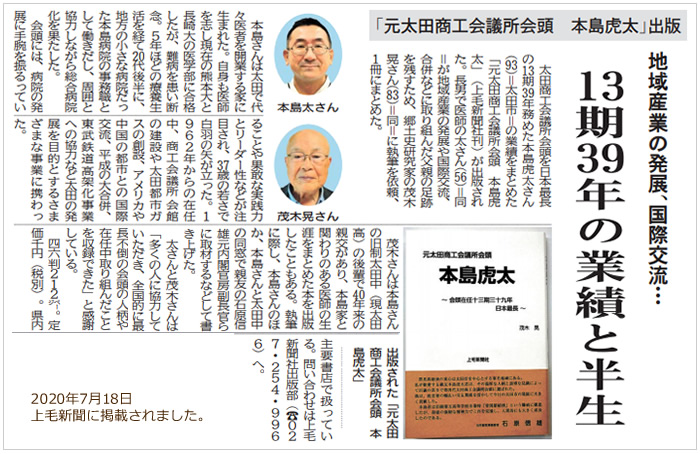 本書が発刊になり、本島虎太の長男としては喜ばしい限りです。