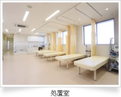 最新型のリハビリ機器の入った、天井が高く見晴しのよいリハビリ室です。